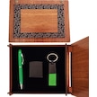 Ahşap Kutulu Yeşil Kalem Anahtarlık Çakmak Seti Hediyelik