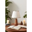 Ahşap Masa Abajuru Kumaş Başlık Dekoratif Masa Lambası Gece Lambası Açık Krem