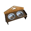 Ahşap Pati Desenli Yükseklik ve Eğim Ayarlı Suya Dayanıklı Kedi Mama ve Su Kabı Ahşap