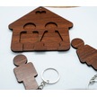 Ahşap Puzzle Tasarım Sevgili Çift Sevimli Ev Duvar Anahtarlık Kahverengi