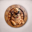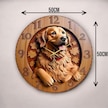 Ahşap Renkli Baskı Golden Köpek Desenli Kabartma Görünümlü Hediyelik Ahşap Sessiz Duvar Saati 50cm ÇOk Renkli