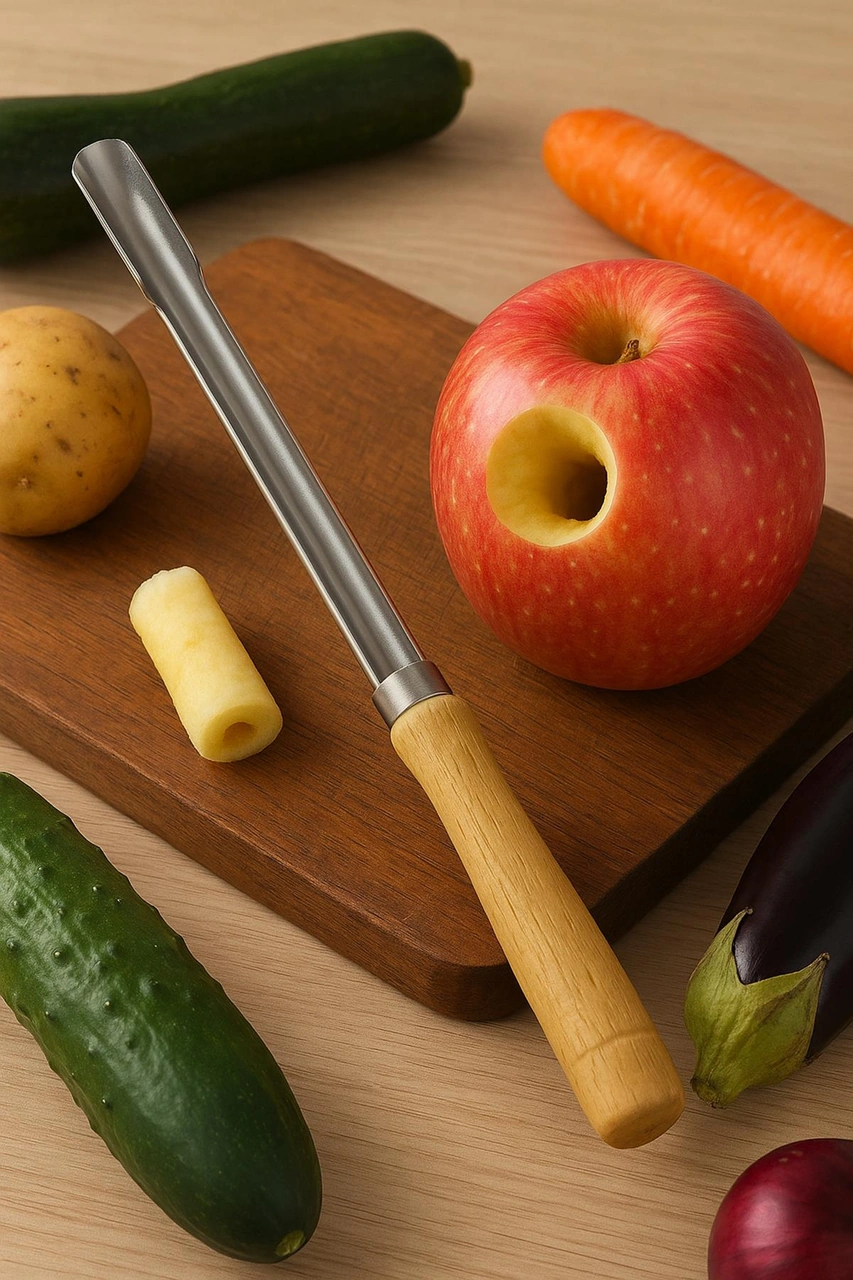 Ahşap Saplı Uzun Oyacak 24 Cm Paslanmaz Çelik Sebze Ve Meyve Oyacağı Ahşap