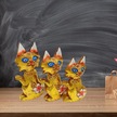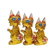 Ahşap Simli Üçlü Kedi Dekoratif Biblo No.2 17 Cm