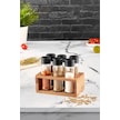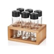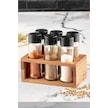 Ahşap Standlı 6'lı Cam Baharatlık Seti - Tuzluk Biberlik Baharatlık Şeffaf