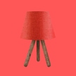 Ahşap Üç Ayaklı Tripot Abajur Kırmızı Dokuma Başlık Yatak Odası Çocuk Odası Masa Lambası Kırmızı