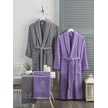 Aile Bornoz Seti Havlulu 4lü Set Antrasit-lavanta Antrasit - Lavanta