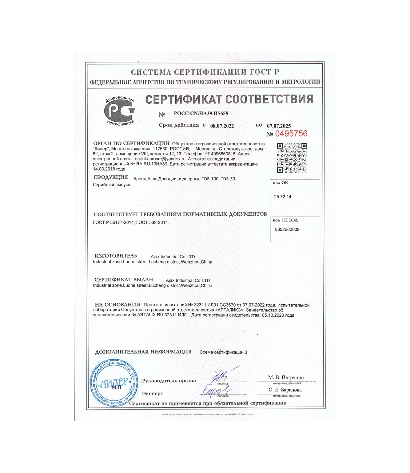 Ajax Dış Mekan Tipi Dona Dayanıklı Tdr-100 Kapı Kapanıcı, 100 Kg'a Kadar 66160774