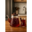 Akasya Kapaklı Ve Saplı Cam Demlik - Isıya Dayanıklı - Cam Demlikli - 3 Parça - 1 Litre Cam