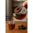 Akasya Kapaklı Ve Saplı Yuvarlak Cam Demlik - Isıya Dayanıklı - Cam Demlikli - Akasya Kapaklı Cam