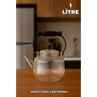 Akasya Kapaklı Ve Üstten Saplı Yuvarlak Cam Demlik - Isıya Dayanıklı - Cam Demlikli - Cam Kapaklı Cam