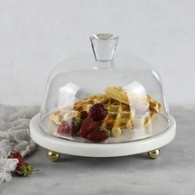 Akayev Mermer 25 CM Altın Boncuk Ayaklı Beyaz Kalın Cam Fanus