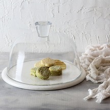 Akayev Mermer 25 CM Beyaz Cam Fanus