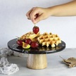 Akayev Mermer 25 Cm Konik Ahşap Ayaklı Siyah Yuvarlak Sunum Tabağ
