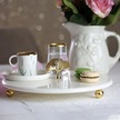 Akayev Mermer Beyaz 28 Cm Altın Boncuk Ayak Ginkgo Sunum Tabağı Beyaz