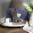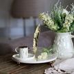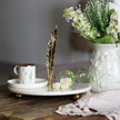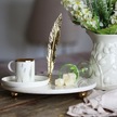 Akayev Mermer Beyaz 28 Cm Altın Boncuk Ayaklı Uzun Tüy Sunum Tabağı Beyaz