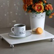 Akayev Mermer Beyaz 30x20 cm Gümüş Boncuk Ayaklı Sunum Tabağı