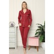 Akbeniz Kadın %100 Pamuk Penye Önden Düğmeli Uzun Kol Pijama Takım 2716 - 2XL Bordo