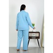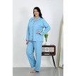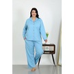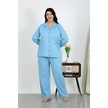 Akbeniz Kadın Büyük Beden Pamuklu Cepli Düğmeli Mavi Pijama Takım 202504 Mavi