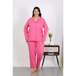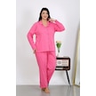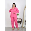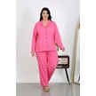 Akbeniz Kadın Büyük Beden Pamuklu Cepli Düğmeli Pembe Pijama Takım 202504 Pembe
