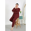 Akbeniz Kadın Büyük Beden Uzun Kol Penye Pijama Takımı Bordo 202501 Bordo