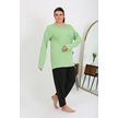 Akbeniz Kadın Büyük Beden Uzun Kol Penye Pijama Takımı Fıstık Yeşili 202408 Yeşil