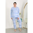 Akbeniz Kadın Büyük Beden Uzun Kol Penye Pijama Takımı Mavi 202502 Mavi