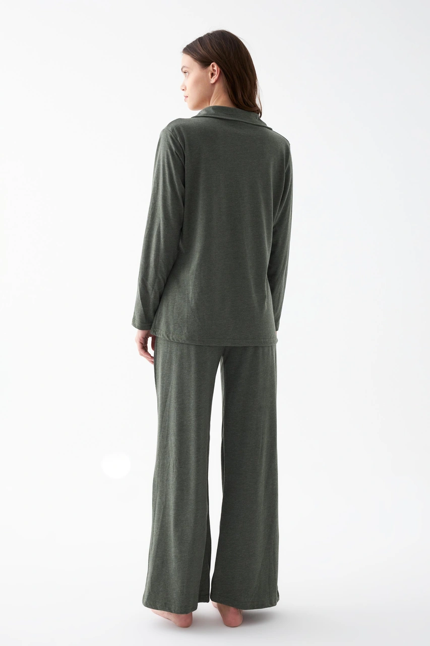 Akbeniz Kadın Haki Düğmeli Pamuklu Pijama Takımı Haki