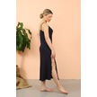 Akbeniz Kadın İp Askılı Yırtmaçlı Uzun Lacivert Gecelik 90119-lacivert Lacivert