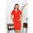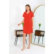 Akbeniz Kadın Pamuk Penye Kısa Kol Düğmeli Kırmızı Tunik Gecelik 13112 Kırmızı