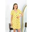 Akbeniz Kadın Pamuk Penye Kısa Kol Düğmeli Sarı Tunik Gecelik 13112 Sarı