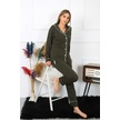 Akbeniz Kadın Pamuk Penye Önden Düğmeli Uzun Kol Haki Pijama Takım 2782-haki Haki