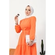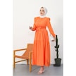 Akel Katlı Tam Boy Kuşaklı Tesettür Elbise 281 - Turuncu