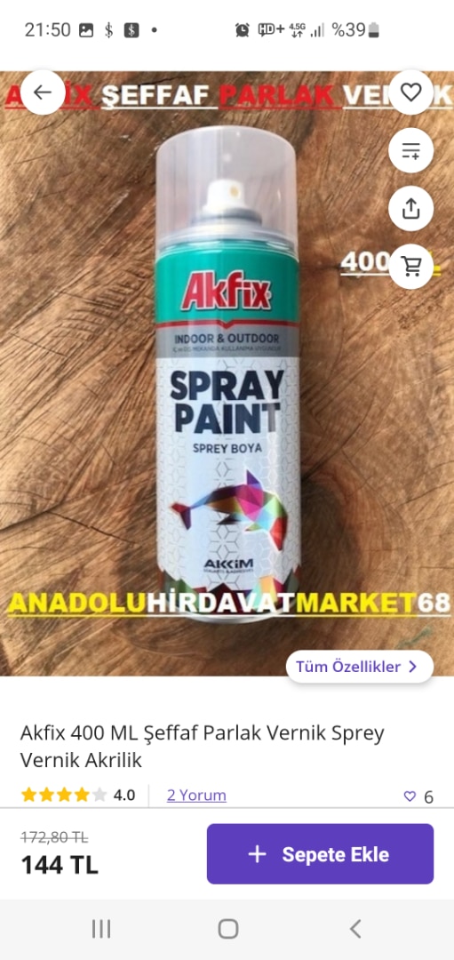 Akfix 400 ML Şeffaf Parlak Vernik Sprey Vernik Akrilik