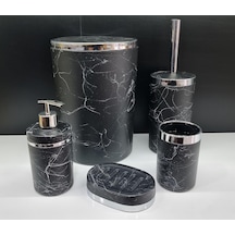 Akrilik Gümüş Siyah Mermer Soft 5'Li Yuvarlak Banyo Seti Beyaz