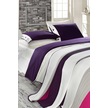 Akrilik Örgü Battaniye Seti Tek Kişilik Mor Krem