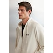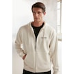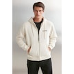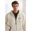 Aksel Erkek Yumuşacık Organik Pamuk Oversize Fermuarlı Baskılı Kapüşonlu Taş Rengi Sweatshirt
