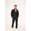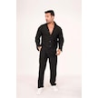 Alaçatı Stili Erkek Krep Kumaş Çizgili Gömlek Ve Pantolon Takım Siyah
