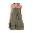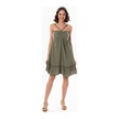 Alanya Boyundan Bağlamalı Kısa Yazlık Müslin Elbise Haki Hk-haki