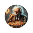 Albert Einstein Pizza Temalı Akarlı Duvar Saati
