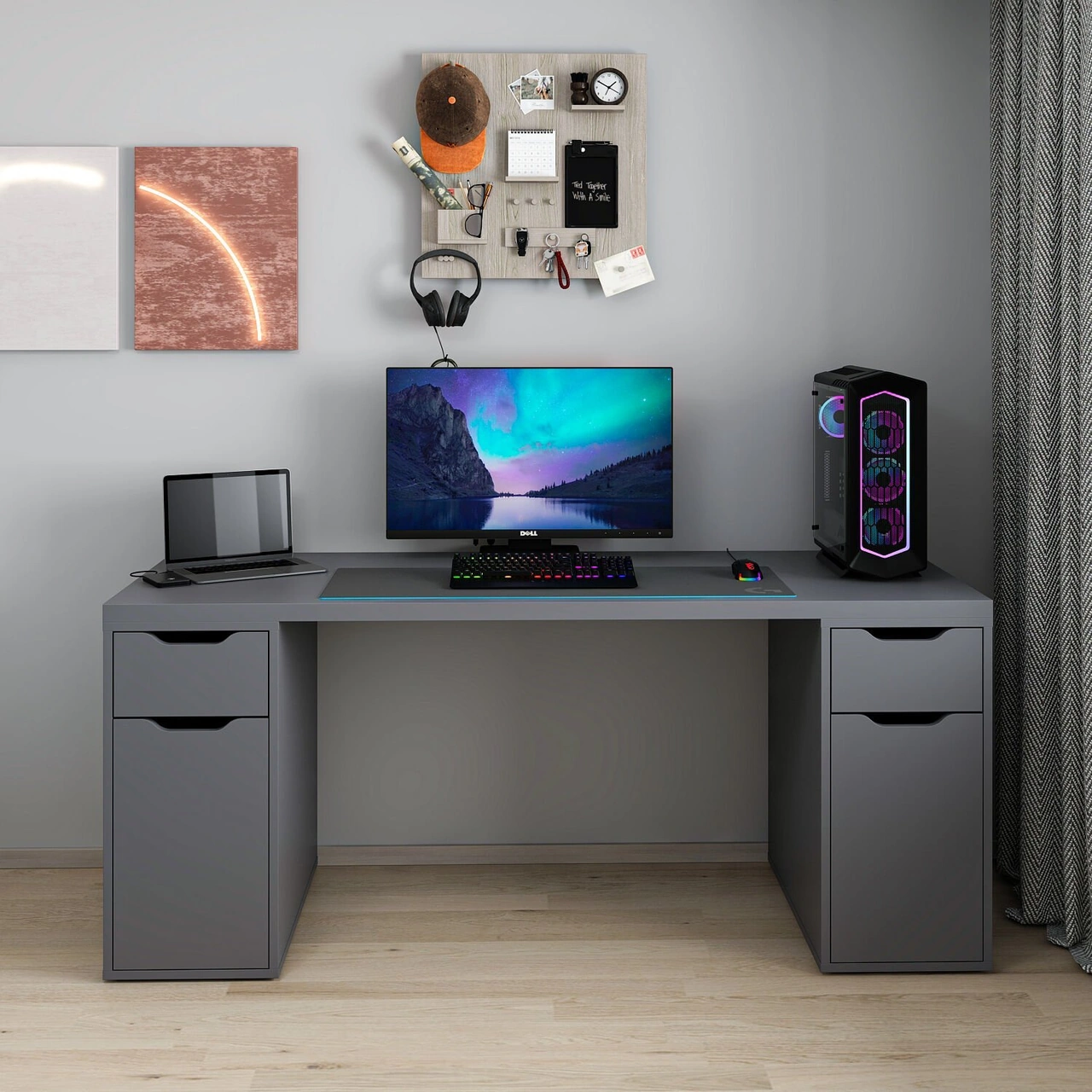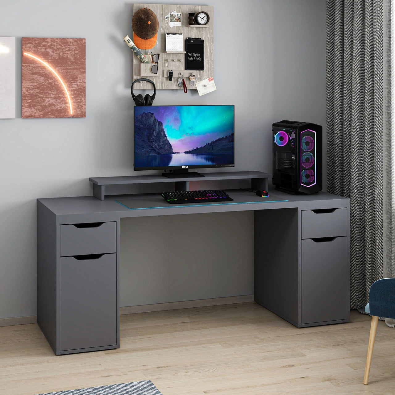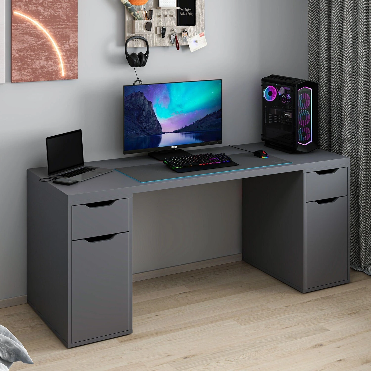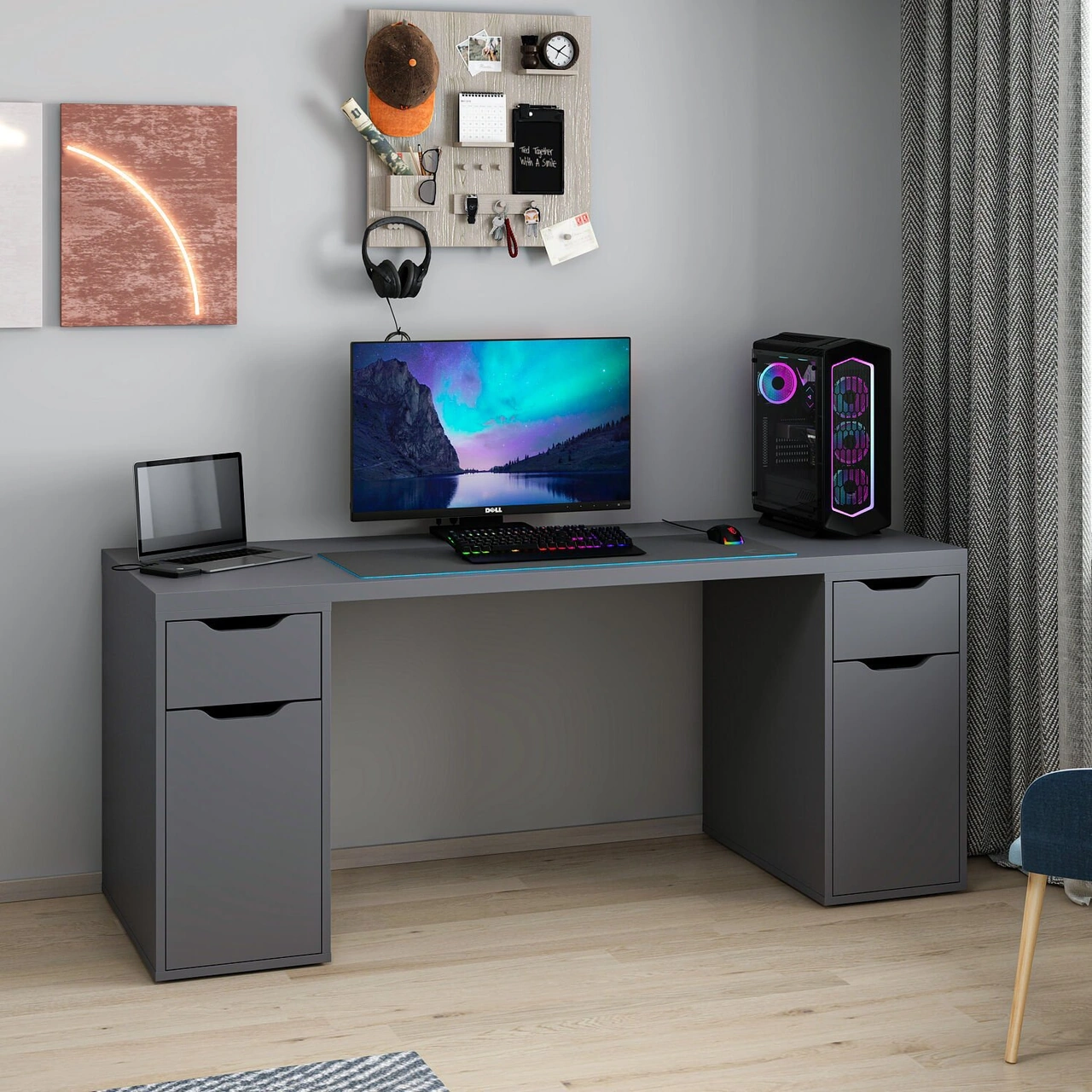 Alen 180 Cm 2 Çekmeceli 2 Dolaplı Çalışma & Oyuncu Masası - Antrasit Siyah