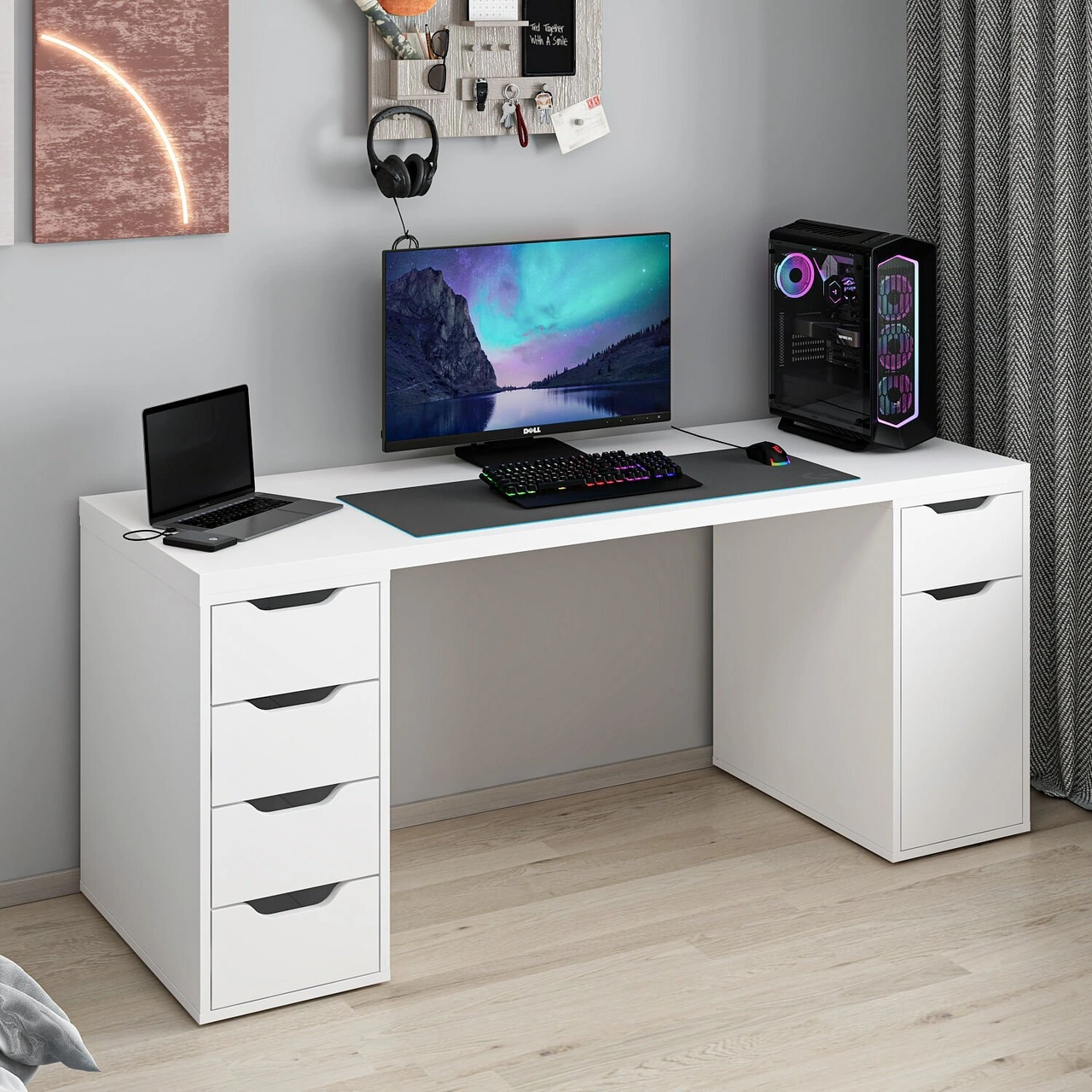 Alen 180 Cm 5 Çekmeceli Dolaplı Çalışma & Oyuncu Masası - Beyaz Beyaz