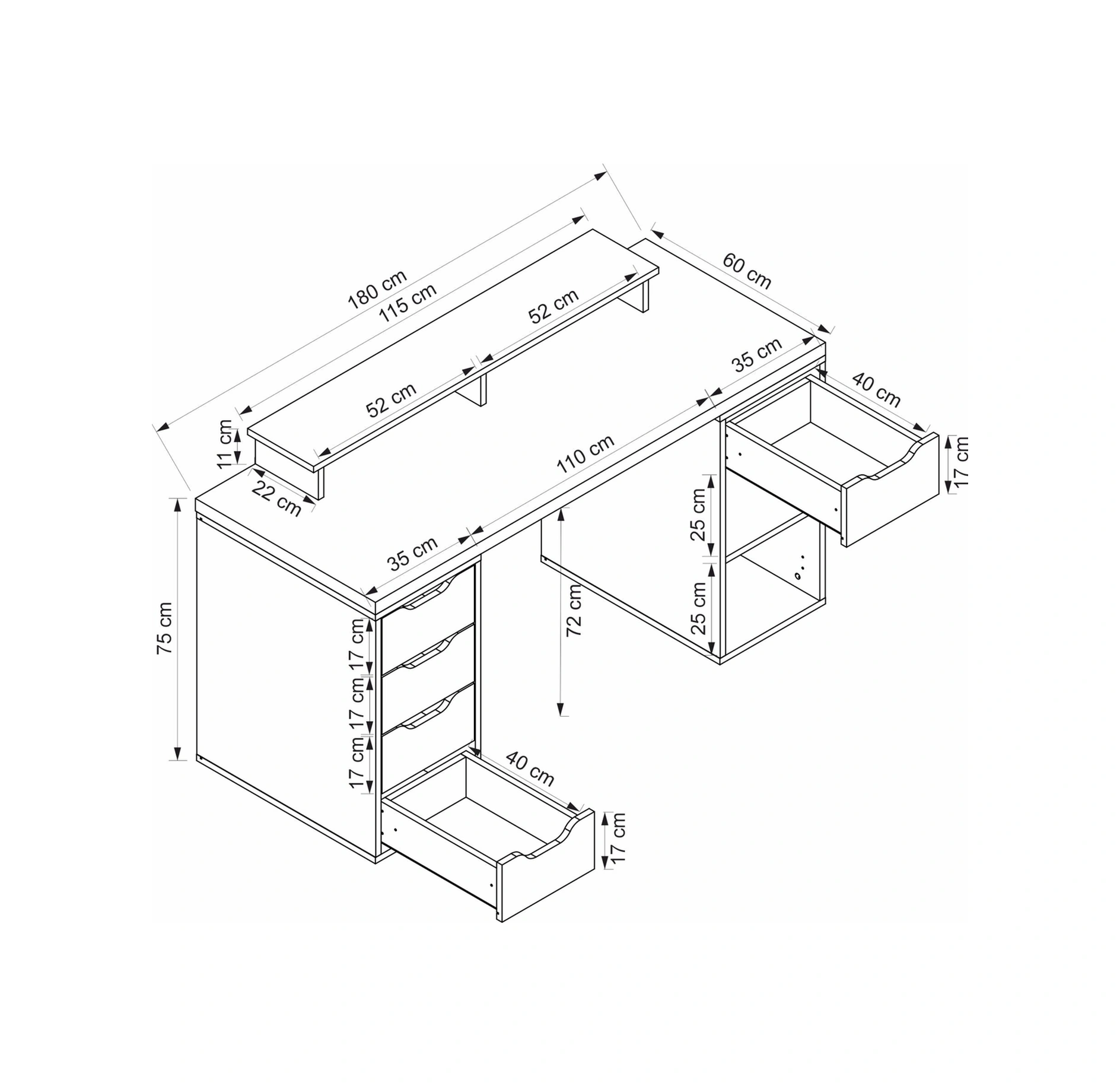 Arnetti Sedir Açılır Kapanır Raflı Çalışma Masası Antrasit