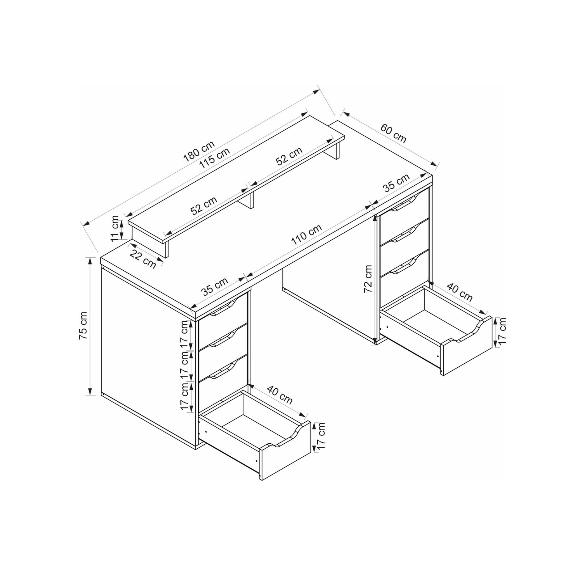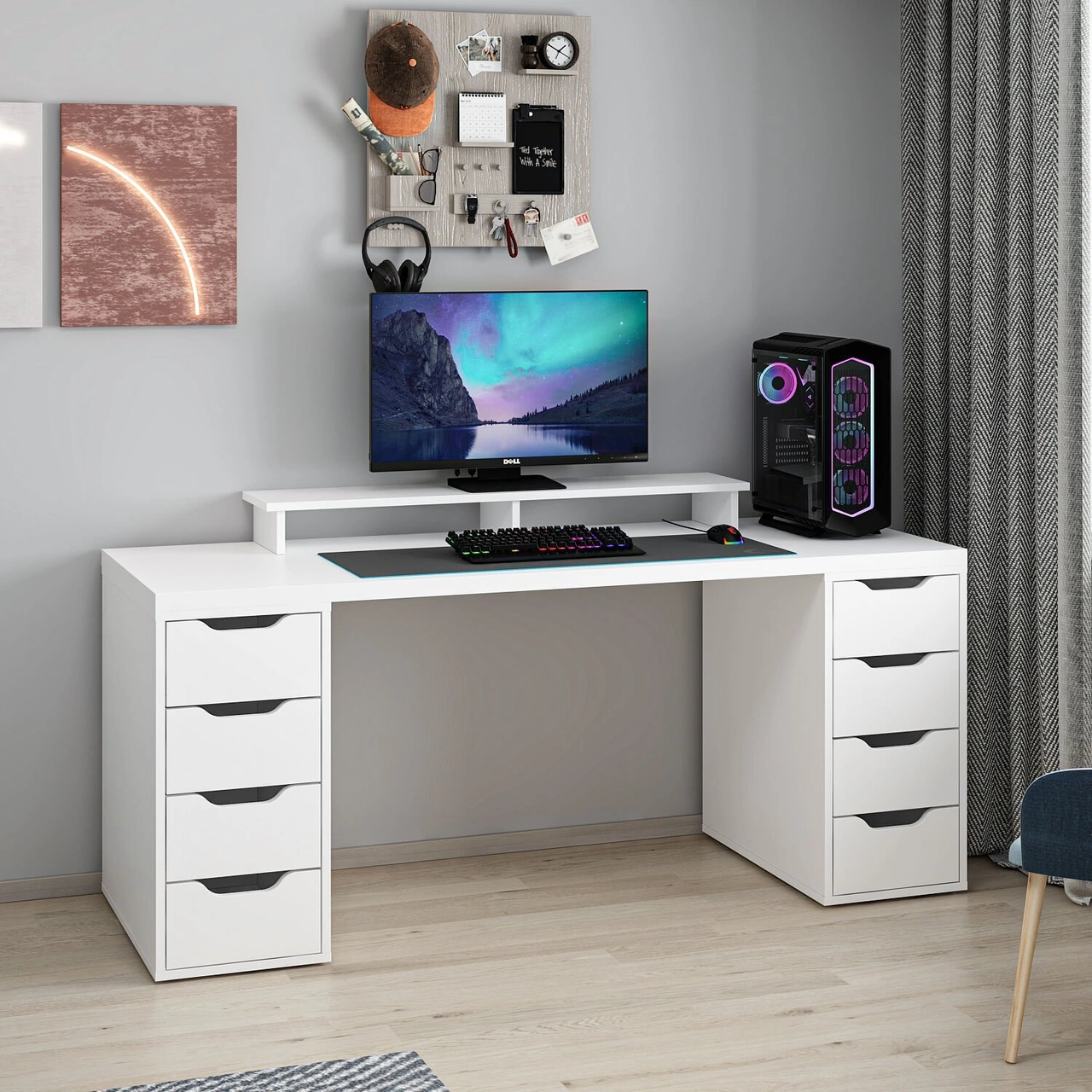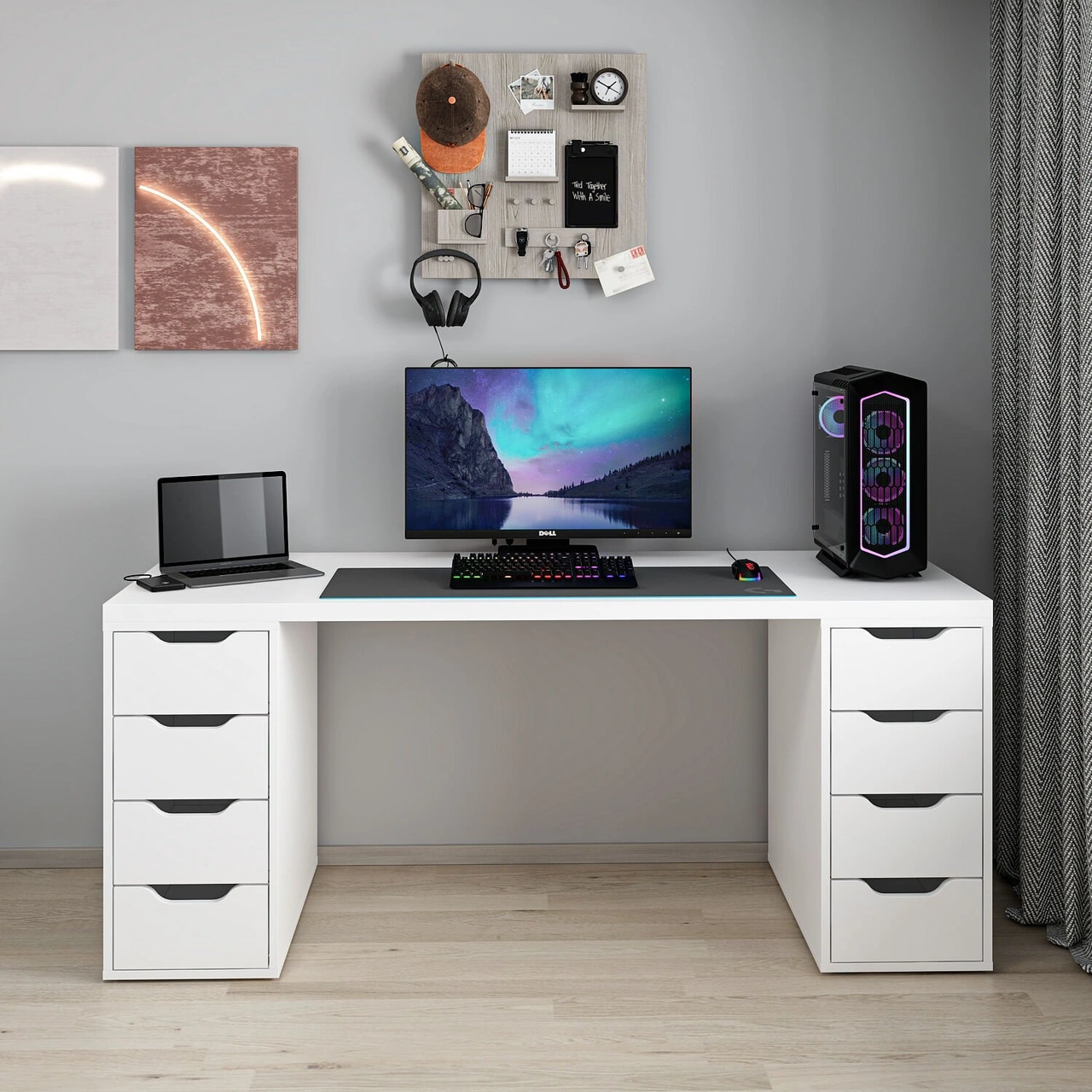 Alen 180 Cm 8 Çekmeceli Geniş Çalışma & Oyuncu Masası - Beyaz Beyaz