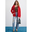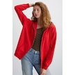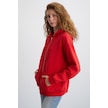 Alena Kadın Oversize Organik Pamuklu Metal Fermuarlı Kapüşonlu İçi Polarlı Kırmızı Sweatshirt