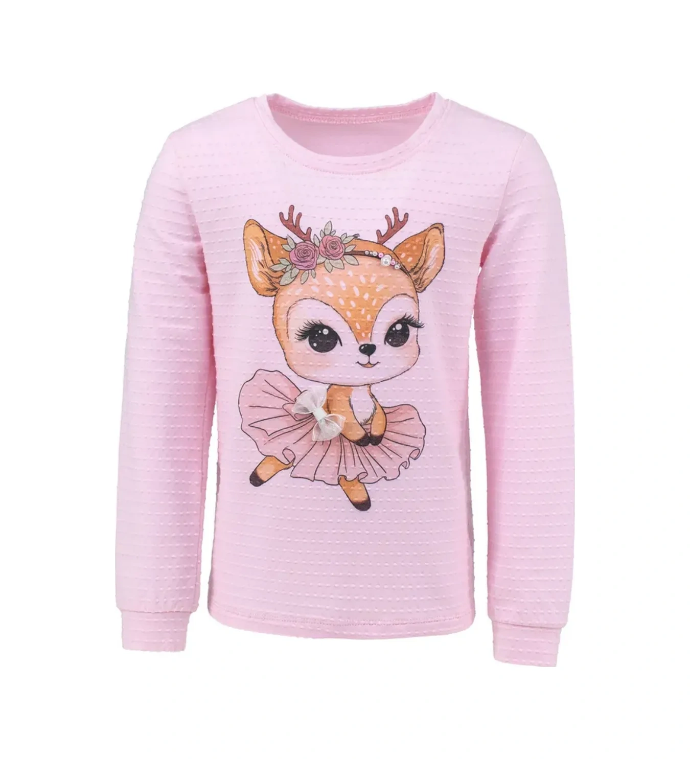 Alena Kız Çocuğu İçin Pamuklu Pembe Baskılı Kanvas Dokusu İle Anaokulu Uzun Kollu Tişört 254637461 Pembe