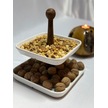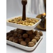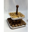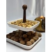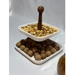 Aless 2 Katlı Ahşap Kulplu Seramik Sunumluk Çerezlik Meyvelik
