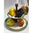 Aless 2 Katlı Yeşil Detaylı Yuvarlak Ahşap Kulplu Seramik Sunumlu
