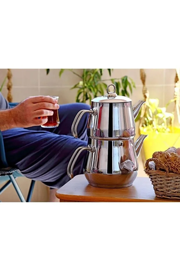 Aletta Büyük Boy Paslanmaz Çelik Çaydanlık Metal Kulp Aile Boy Kullanım Çelik