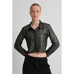 Alexandergardı Desenli Uzun Kollu Dokulu Crop Gömlek Sarı - Siyah
