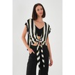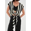 Alexandergardı Önü Bağlamalı Desenli Bluz Siyah - Beyaz